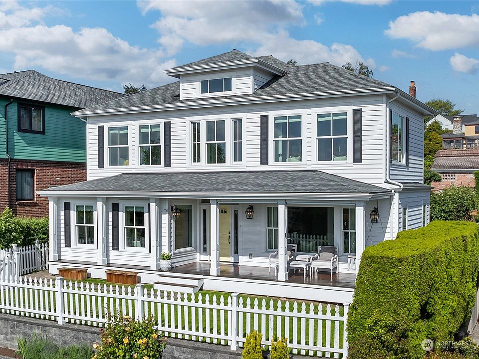 Relax…and drop your worries at the door of your Carlton Park coastal retreat. 2015 custom build boasts expansive views to the Puget Sound & Olympic Mountains. Soaring ceilings and sizable rooms, cook a meal for a few or many in your grand kitchen featuring a gorgeous, honed marble island. Love living here – rain or shine. Spill out onto the covered outdoor patio and fire up the grill or enjoy a cozy evening in front of the outdoor fireplace. Or, soak in an amazing sunset from your magnificent west-facing front porch. Featuring a primary suite that makes all other primaries jealous, outdoor living room, home gym, media room and an upgraded, fully drywalled/heated garage for hobbies and play. 4 car-total parking off the level alley. Dreamy!