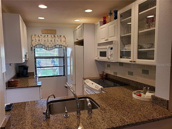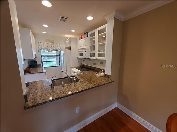 Nicely updated unit, definitely a place to call home or just a winter get away. Beautifully updated condo with tasteful upgrades including granite countertops over upgraded cabinet and recessed lighting. Decorative touches include Crown molding, raised panel doors, barn door and upgraded 4 inch baseboards that nicely offset the hardwood floors in this quiet neighborhood located near SCF and IMG. Includes all appliances with Stacked Washer and Dryer giving extra room in the cozy lanai. Close to beaches and SRQ. shopping and schools. A definite must see. Florida awaits you heated pool, club house, tennis, shuffle board, close to beach and Sarasota. Super Low HOA including water, sewer, trash, basic cable, internet , all comunity features, outside maintenance, roof and unit has its own outside storage and carport $247.00 monthly HOA..... Ready to move in....