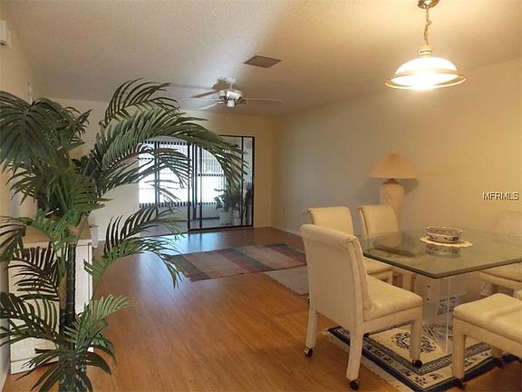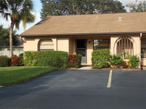 Great end unit villa only steps from the clubhouse, pool, tennis court and shuffleboard court. Foyer entry. Updated eat-in kitchen with Samsung stainless steel appliances. Spacious great room. Glass enclosed lanai with utility closet housing the washer and dryer has an exterior door and tile floor. Master suite with walk-in closet and bath. 2nd bedroom also has a walk-in closet. Both baths updated. Assigned carport and guest parking. No age restrictions. No leasing. Easy to show.