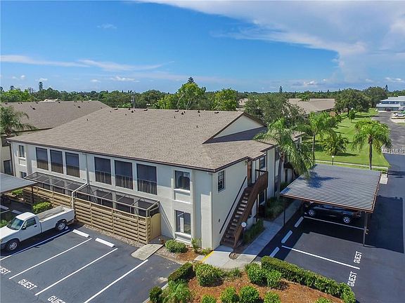 Come see this Country Village gem! Furnished 2nd Floor Corner Unit, minutes away from Anna Maria Island, endless shopping opportunities, restaurants, and recreation. This 55+ community offers an active lifestyle including a updated clubhouse surrounded by a heated pool with spa. Whether your interest is Exercising, playing cards, billiards, or simply socializing, this is the place for you! Some other amenities include shuffleboard, a picnic grilling and car wash area. Carport including a generous number of visitor parking spaces located directly below condo. The floorplan offers exceptional living space options with 3 sliding door units entering into a huge lanai. Recent installation of A/C unit and refrigerator including warranty. New blinds are on order for the 3 sliding door windows
