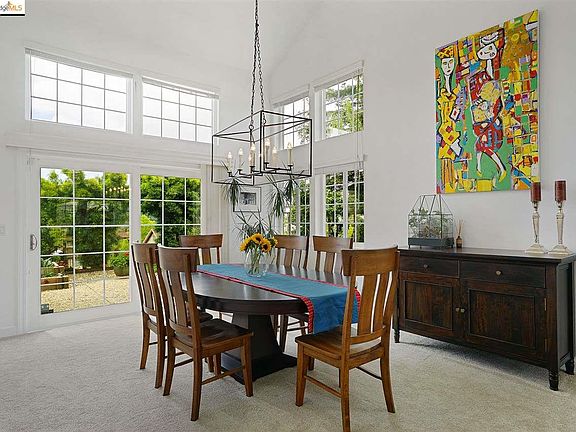 True GEM in highly desired Crown Ridge cul de sac, prettiest part of Pinole! Open-flow in-out floor plan is entertainers dream, in serene garden setting & far hills view. Combo LR-formal DR w/soaring vaulted ceilings & great wall space for art. Natural light abounds. Lovely garden views out most windows. Gourmet Kitchen /Family Rm /bay-window Breakfast rm combo opens to patio & lush gardens. Updated kitchen w/SS appliances, stone ctrs. Garden planned as outside "rooms" to encourage movement around lot, incl paved patio, raised beds, small meadow w/ redwood, 2 garden sheds + a gentle sunny-side slope makes a larger veggie or ornamental garden possible. One bed/bath downstairs, currently used as office, upper has 3 bedrooms, 2 baths incl large master bed/bath suite (distant water views on clear day). Large walk-in closet off bath gives a spa/dressing room feel. Ridge hike access next block. Parks+ swim center nearby. TJ's, Sprouts close!! Easy commute to Berk/Oak, SF, Marin.
