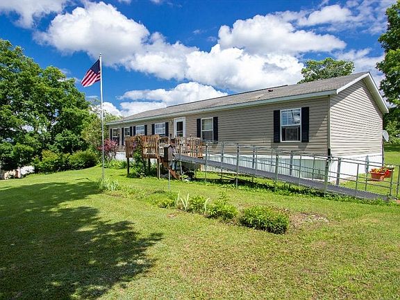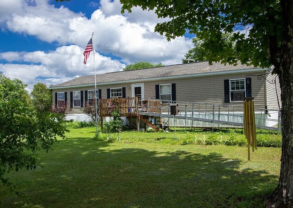 A FINE 3 bedroom, 2 full bath (One with large sit down shower stall) double French door family room, and prime pop in insulated windows. The home sets back, semi hidden from the paved road, with a level driveway and yard spotted with tall maples, spruce trees, and an abundance of bushes and flowers. The well kept mowed lawn leads to a large spring feed pond stocked with Bass, and maybe a few frogs. The Grandchildren have used the pond area as a camping spot and swam in the pond many times.There is a small shed used for the water storage tank and a few yard tools.There is plenty of areas to have a few horses, ride ATV's, and watch the wildlife, but recently has not been completely mowed.
