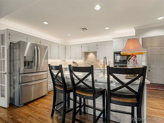 Brand-new high efficiency HVACs (Sept. 2025), BRAND NEW ROOF with class 4 shingles that should qualify for an insurance discount, and freshly stained driveways! Impeccable home in South Tulsa's Litchfield; Jenks Schools. Situated on a corner lot with a circle front driveway, side-entry garage, and gorgeous landscaping, this home has curb-appeal galore. The flexible floor plan provides plenty of space to suit your needs with a great flow; formal dining room, formal living room, granite kitchen open to den. French doors open from the den to the study with built-in storage and beautiful natural light. Neutral color palette and fantastic lighting. The spacious primary bedroom is situated on the main floor with access to the back patio, a large walk-in closet and ensuite bathroom. Split bedroom floor plan has two bedrooms on the other side of the home with a pullman bathroom. Stairs lead up to the fourth bedroom (or game room) with a small granite kitchenette, large full bathroom, and walk-in closet. Need additional storage? 9 x 12 exterior shed with electric and powered roof vents! Enjoy quick access to Riverside Drive, ORU, Downtown Jenks, Riverwalk dining and entertainment and so much more.