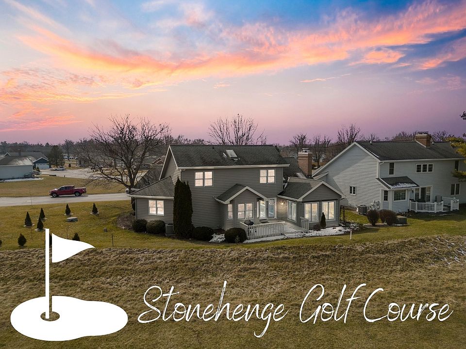 "Just in time for spring! This beautiful golf-front home offers just under 4,000 sq feet of interior living space, and panoramic views of the fairway. Including a main level master suite with a 4’x6’ tile shower, modern style soaking tub, and walk-in closet. There is also a second bedroom on the main level which boasts a 14’ high cathedral ceiling, built-in desks, and a walk-in closet. The fireplace and sunroom help to make the living area and open dining feel warm and inviting. There is even a spot just off the garage and foyer to have a main level laundry if needed (it is already plumbed for laundry) Upstairs is the third bedroom which has a private full bath, walk-in closet, and 12’ foot cathedral ceilings. An extra family room upstairs could also be turned into a fourth bedroom, or game room for the kids. You will not want to forget the full unfinished lower level for addtional living space-this space alsy has built-in shelving, storage closets, and a home gym. Recent updates include: high efficiency gas water heater (2022), energy efficient skylights (2022), interior and exterior paint, remodeled bathrooms (2023), landscaping, granite countertops (2020), AC (2019), and the sunroom windows/patio door (2019). Also included is an automatic whole-house generator, a radon mitigation system, an irrigation system, heated garage, and a high efficiency gas furnace with 4 zones for maximum comfort. This well built home is sure to impress, and has been immaculately maintained. Tour this great home today!"