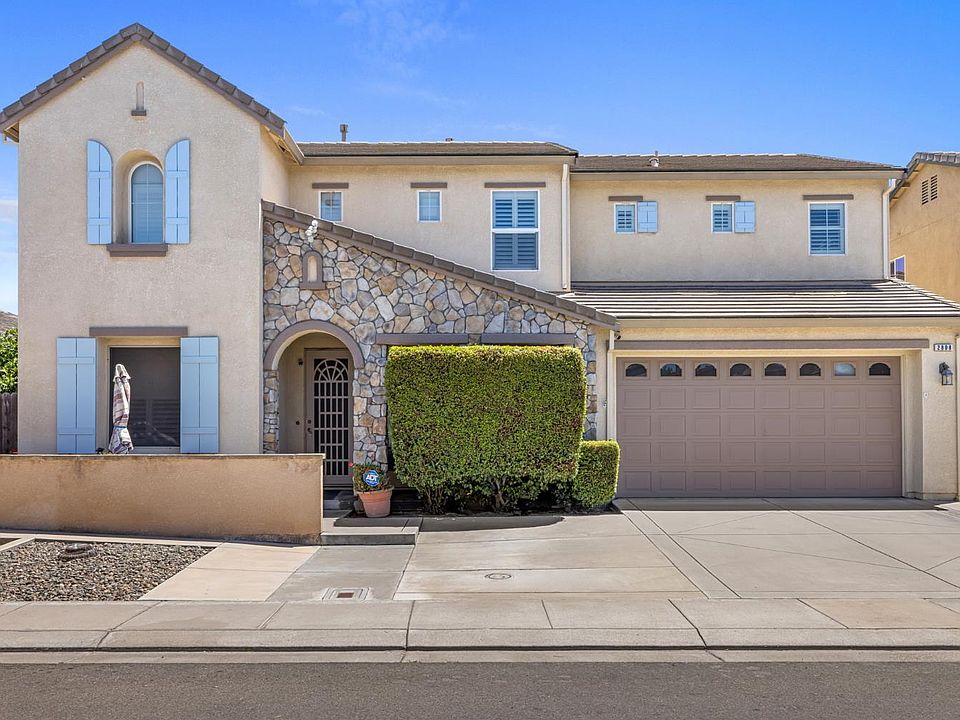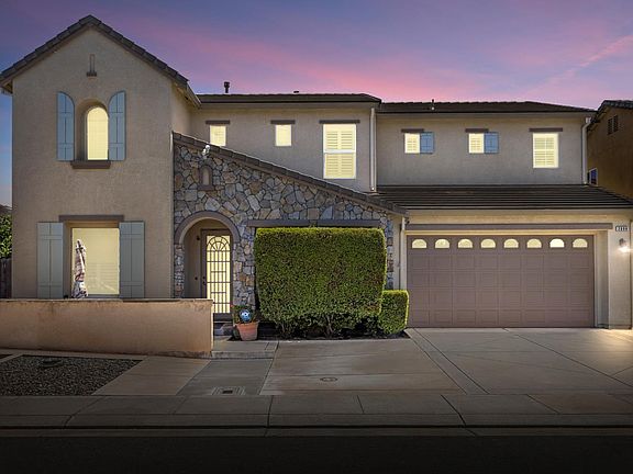 Welcome to 2808 Espana Ln, a beautifully upgraded 3,605 sq. ft. home in Northeast Modesto's highly desirable Village One neighborhood. This spacious 6-bedroom, 4-bathroom residence includes a downstairs bedroom and full bath, perfect for guests or multi-gen living. The gourmet kitchen features granite counters, a large island bar, and stainless steel appliances, flowing into separate living, family, and dining areas with custom two-tone paint and stylish tile and carpet flooring. Throughout the home, you'll find elegant plantation shutters and high quality Milgard windows with a lifetime warranty, combining energy efficiency with timeless style. The expansive master suite offers a jetted tub, walk-in closet, and new shower doors. Just steps from the solar-heated lap pool is a detached fitness room with three large patio doors that open wide for fresh air and natural light, ideal as a gym, office, pool house, or multipurpose retreat. The backyard is a private oasis with fountains, trellises, and professional landscaping worth over $100k. Recent updates include a new pool pump and filter (2025), upgraded water softener system, ceiling fans, added laundry sink, and more. With nearby schools, parks, and shopping, this home blends luxury, comfort, convenience, and lifestyle!