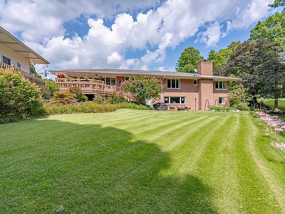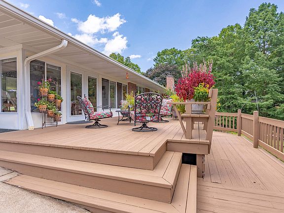 Fantastic 3 bedroom, 3.5 bath ranch home with a full finished walkout basement located on the westside of Evansville. This well maintained home has an abundance of natural light and offers great views of the beautiful park-like setting. This home has been updated throughout! The home offers several canned lights, pella windows, crown molding, solid wood doors, granite & quartz counters, ceramic tiled backsplash, tiled flooring, ceramic tile showers, plank vinyl flooring, newer carpet, neutral colors throughout, all newer wiring, and all newer plumbing. The lovely eat-in kitchen with quartz counters, maple Fehrenbacher cabinets, stainless steel appliances, Subzero refrigerator, and pantry is a chef's delight. The floorplan has an open Living Room, Dining Room and a sun porch, too. The half bath is located off the Foyer. Conveniently located on the main level is the laundry room with utility sink. The walkout lower level has a large open family room with stone fireplace, second full kitchen, a full bath, a walk-in closet that can be used as a storm shelter, and an extra large storage room. Enjoy the outdoors from the large wood deck with built-in bench. Two car carport plus two car detached garage. There is a 9x13 home office in the detached garage.