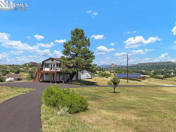 Sitting on 6+ acres and conveniently located <5 minutes from historic downtown Castle Rock and I-25 this must-see property is even more stunning in person. Fully renovated in 2024 with the highest attention to detail and craftsmanship this practically brand new home is bathed in natural light and stunning views from every window, including the Castle Rock itself. Listed at 6.38 acres with up to a total of 17 acres available, this central Castle Rock location is unmatched. In addition to the main house, the 1100sqft 2 bed 1 bath barndominium is the perfect space for a guest house, mother-in-law suite or short/long term rental making this property perfect for multigenerational living. Originally built in 1971 the main house renovation boasts designer finishes throughout, including Brazilian quartzite, built-in cabinetry and custom maple woodwork. Engineered white oak flooring with radiant heat throughout the main level. The master suite includes vaulted ceilings, electric fireplace, walk-in closet with custom cabinetry as well as a large 5-piece en suite. The kitchen, equipped with Viking appliances, has everything a chef or entertainer could ask for and includes a large butler's pantry with butcher block counters and all the storage you could need. Upgraded electrical, plumbing and HVAC give peace of mind and comfort. Outside boasts a freshly paved driveway, concrete patios, as well as multiple seating areas to further take in the views. You'll experience a sense of seclusion while being minutes from I-25, downtown Castle Rock and grocery stores, and 30 minutes from Denver! You will have the ability to garage up to 9 cars, plus multiple locations to store RVs and equipment. The gentle sloping acreage is a true haven for all varieties of wildlife and gives the option to own horses and certain livestock. The property is well manicured with low maintenance landscaping, irrigation and drip lines. Located in unincorporated Douglas County, lower property taxes and no HOA!