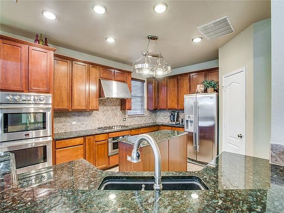 Beautiful 4 bed, 2.5 bath home. Must see kitchen with stainless steel appliances, double ovens, vertical vent hood, granite and 42 inch cabinets. Master BR has a Pella sliding glass door which opens to the amazing backyard oasis anchored by a sparkling saltwater diving pool with huge rock waterfall and additional water effects. Backyard surrounded by 8 foot privacy fence. Removable security fencing as well. The custom covered patio and pool make this a great area for entertaining family and friends. Additional upgrades include custom built-in cabinets in family room, master bedroom and gameroom. Energy efficient HVAC system and Tech Shield roof decking add to energy efficiency. Welcome home!