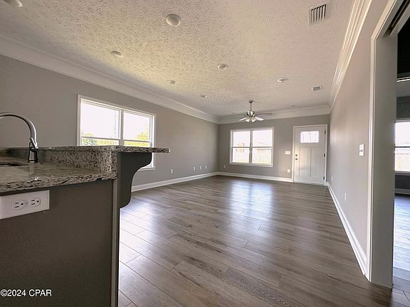 : This beautiful 3 bedroom, 2 bath craftsman style home is situated on a spacious lot, conveniently located in Panama City. Upon entering this home, you will take note of the boastful 9-foot ceilings, and luxury vinyl planking throughout. The kitchen is equipped with custom built wood cabinets with Granite countertops, and stainless steel - Whirlpool appliances. The open floor plan utilizes space and emphasizes comfort. Harbor Breeze ceiling fans can be located throughout. 14 Seer AC electric heat & air system with R-38 insulation in attic and R-13 for walls, sound proofing between living areas and bedrooms. Full landscaping package with irrigation. CONSTRUCTION TO BE COMPLETED BY JULY 31 ST, 2024.