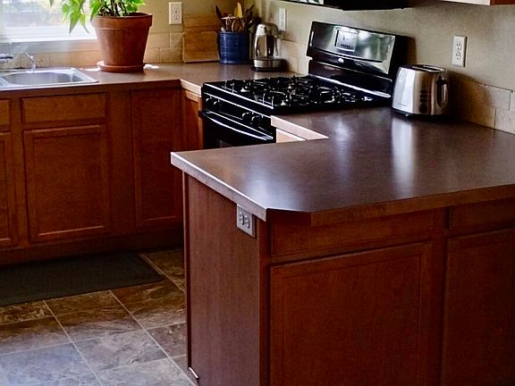 - Breakfast Bar, Fiberglass Stall Shower, Laminate Counters, Open Floorplan, Primary Downstairs, Shower/Tub Combo, Vaulted Ceiling(s), Walk-In Closet(s)