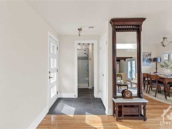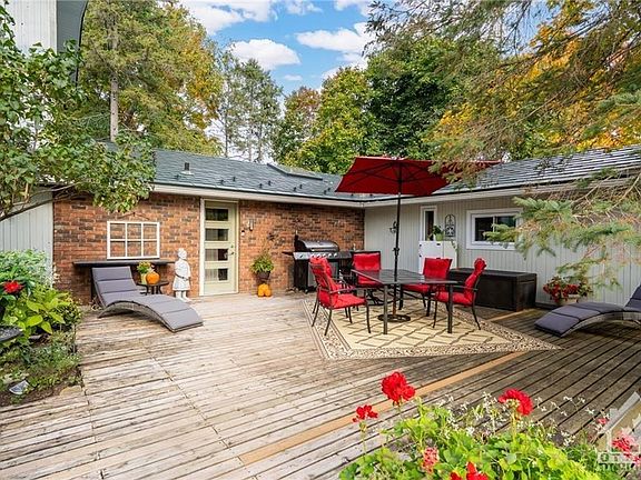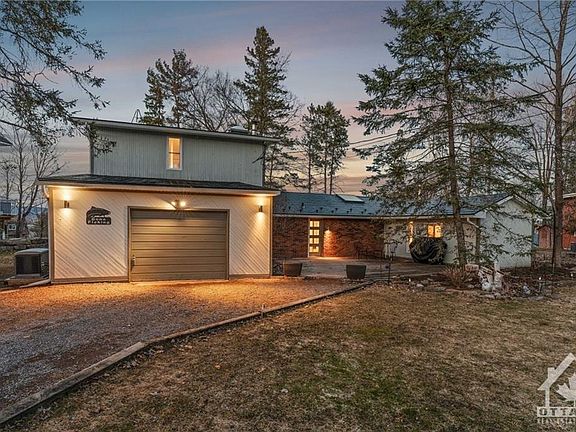 Welcome to 2808 Old Maple Lane! This comfy home in the friendly waterfront community of Dunrobin Shores provides gorgeous vistas of the Ottawa River & deeded river access for those inclined. An expansive front yard & large deck with mature gardens & south-west exposure, is perfect for al-fresco dinners & entertaining. The main entrance features heated tile with access to a full bath with step-in shower. Rich wood & wood-style laminate floors are brightened by big windows & skylights. The main level includes a carpeted bedroom, office, tiled den with wood stove & a formal dining area. A large open kitchen worthy of the very best “East Coast” kitchen party completes the main level. The primary suite upstairs boasts an ensuite with soaker tub under a skylight, walk-in closet & large balcony with river views. The home has great upgrades, including full warranties on the windows(17yrs) & metal roof(53yrs), with an auto-transfer generator & Bell Fibe installed.