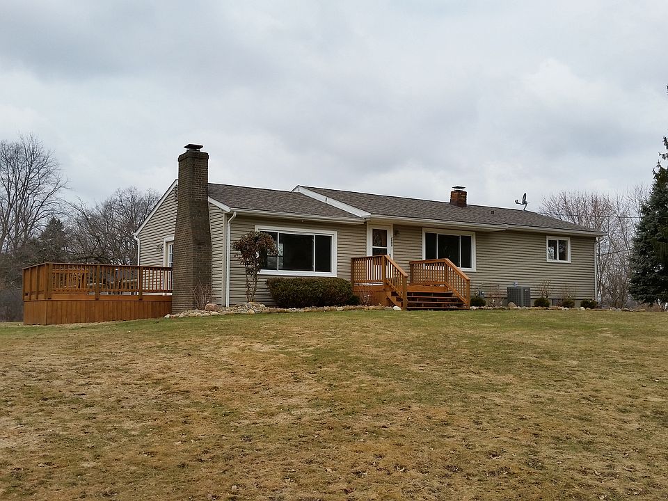 Completely renovated Ranch in Green offers 3 bedrooms, 2 full bathrooms, open floor plan, family room with fireplace, living room and finished rec room in the walk-out lower level. An updated new kitchen with appliances, 2 full bathrooms, flooring, carpet and paint. The owner's bedroom with attached bathroom is a wonderful feature. Raised dinette is overlooking the family room with double French doors leading to the freshly stained deck. Brand new Lennox efficiency furnace and central air. A fantastic Green Ranch on a large corner lot!