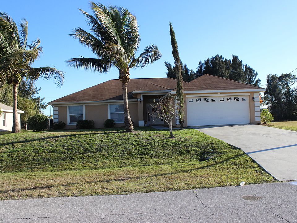 Just REDUCED for a quick Sale!! Location, Location, Location! You have a move-in ready home that's a beautiful 4 bedroom, 2 bath, 2-car garage. The owners have meticulously maintained this home. It boasts a split floor plan with Vaulted ceilings, open kitchen perfect for entertaining along with a large great room! Brand new TRANE AC. Screened-in porch/lanai with plenty of room for a pool to create your outdoor living oasis. Located in the highly desirable Unit 54. This is a perfect family home that is located within walking distance to Jim Jeffers Park and Christa Mcauliffe Charter School, and only a few minutes from Publix shopping center and the Cape Coral Sports Complex. If you own a boat this house is perfect. It's so close to the Burnt Store boat ramp that you could have your boat in the water in less than 5-10 minutes. Schedule a showing today and submit your offer. Priced right and won't last long.