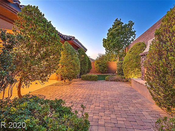 Cul-de-sac lot has great curb appeal with stacked stone elevation, gated courtyard and double door entry. 3 generously sized bedrooms + office with double doors. The spacious family room lives like a great room, open to the kitchen with built-in media niche, fireplace, and surround sound speakers. A gourmet kitchen with granite counters and backsplash, island with breakfast bar, stainless steel appliances, including 2 convection ovens, built-in refrigerator, 5-burner cooktop, built-in microwave. The living and dining rooms have large, picturesque windows showing the outdoor fireplace. The grand master is separate from other beds with a walk-in closet, 2 vanities, separate tub & shower. Throughout, you will find upgraded touches like, garage cabinets, epoxy garage floors, water softener, tankless water heater, alarm, smart panel, 5-year appliance warranty and more. The backyard paradise is perfect for entertaining, featuring a outdoor fireplace, lush landscaping, and covered patio.