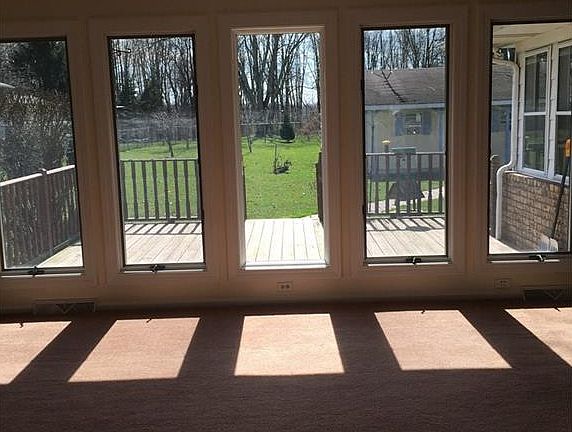 New price and neutral paint March 2017. Great location - a quality home! All brick 1692 sq. ft. ranch, 1-acre lot makes entertaining enjoyable. Convenient welcoming horseshoe shaped all concrete drive. Hospitable living room, abundant natural sunlight with 5' windows throughout, stone WDBR fireplace (gas available). Large back deck views professionally landscaped gardens and delightful feathered friends. You'll appreciate handiness of dining room with sliders to bright sun porch partially shaded by mature trees. Eat-in kitchen boasts bay windows and custom built island. Huge walk in pantry with abundant storage situated across from 1st floor laundry. Many recent energy efficient upgrades includes newer hot water heater, furnace, central air, full water softening system with a reverse osmosis tap at kitchen sink and refrigerator. Double-garage door opener with security keypad. Newer appliances include oven, refrigerator and dishwasher. The full basement has a professionally finished large room using the Tuxedo System, canned lighting ambiance and helpful closet (easy to convert to a third bedroom). Huge L-shaped unfinished area available for your imagination. Charming stone pathway leads to the 20x24 garden workshop, poured cement porch, and shaded hanging swing. Single garage door at back of shed promotes hobbies of all kinds. Wooded area behind adds privacy. Pets are protected with a 5' high obscure chain-link fence. A unique must see!