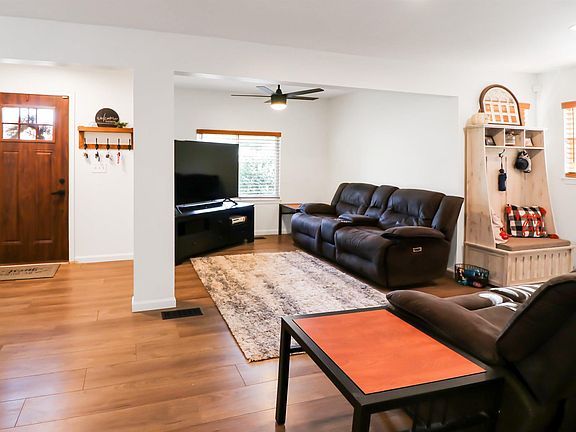 This beautiful home had a complete makeover just a couple years ago and the sellers have recently added a 2 car garage as well. Sitting back off the road on 2 parcels that combine into a 1/2 acre lot in town with mature trees that give you that added extra privacy. Love that black and white theme? Then you will love this home with its nuetral interior so you can add that splash of color with decor if you like. 2 bedrooms and 1 full bath as well as a den space that could also be used as a guest room or extra bedroom. Garage is 21x31 with 12 ft ceilings and one section has 6" concrete with 240 volt electric hookup. Large backyard space great for entertaining as well.