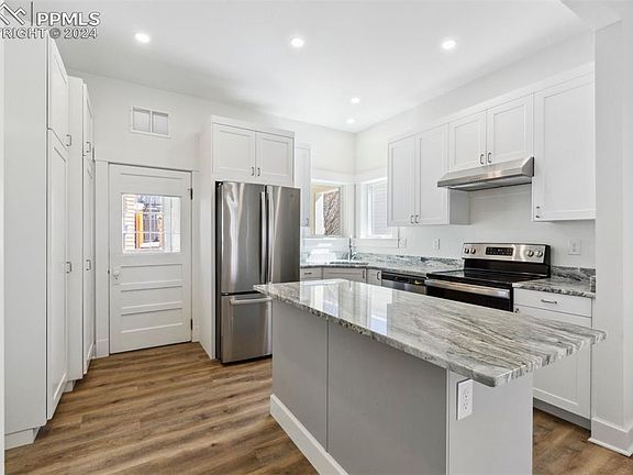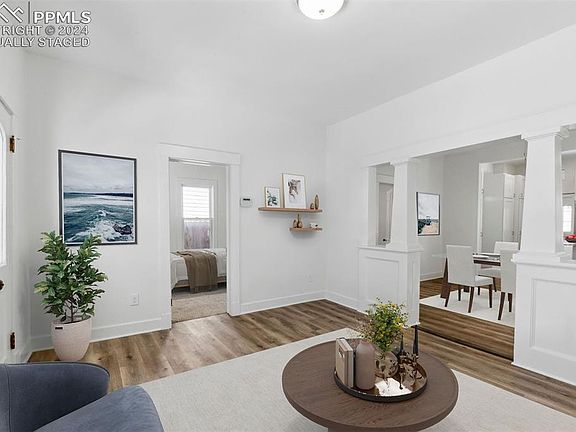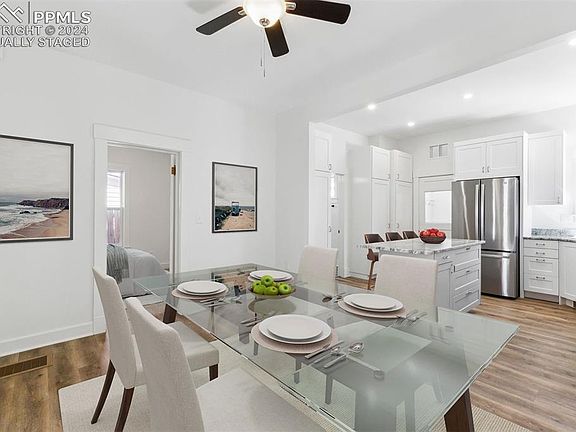 Welcome to your new bungalow, nestled snugly in the heart of historic Old Colorado City! Prepare to be captivated by this meticulously renovated home, where every detail has been lovingly attended to. A harmonious fusion of timeless charm and contemporary features awaits within these walls. Upon stepping through the threshold of the classic covered front porch, you are greeted by an airy living space, that exudes warmth and welcome. Newly installed, high-quality luxury vinyl plank flooring spans the spacious common area, epitomizing modern and functional finishes. Seamlessly connected, the dining room flows effortlessly into a meticulously redesigned kitchen, replete with quartz countertops, a central island, brand-new stainless-steel appliances, and abundant cabinet space for all your culinary needs. Conveniently adjacent lies a well-appointed laundry/mud room, ensuring practicality meets function at every turn. Two bedrooms, adorned with new carpeting, and an indulgent full-sized bathroom, illuminated by two ample windows, bathes the space in natural light. This is what we wish every homeowner would do for their historic homes on the Westside, so prepare to be astonished, for this home has been reborn from the ground up! From the meticulously engineered hand-dug and leveled foundation beneath the original structure to the redesigned kitchen and bath, and the comprehensive overhaul of walls, plumbing, electrical wiring, service panel, water heater, furnace, and roof—every aspect exudes unparalleled craftsmanship and attention to detail. Outside, discover a fully fenced low maintenance yard, complemented by a detached one-car garage boasting a workshop and alley access. Within walking distance to Old Colorado City, there’s easy access to a variety of restaurants, coffee shops, and shops. Take advantage of the opportunity to own this cozy and character-filled home in a prime location. Schedule a showing today!