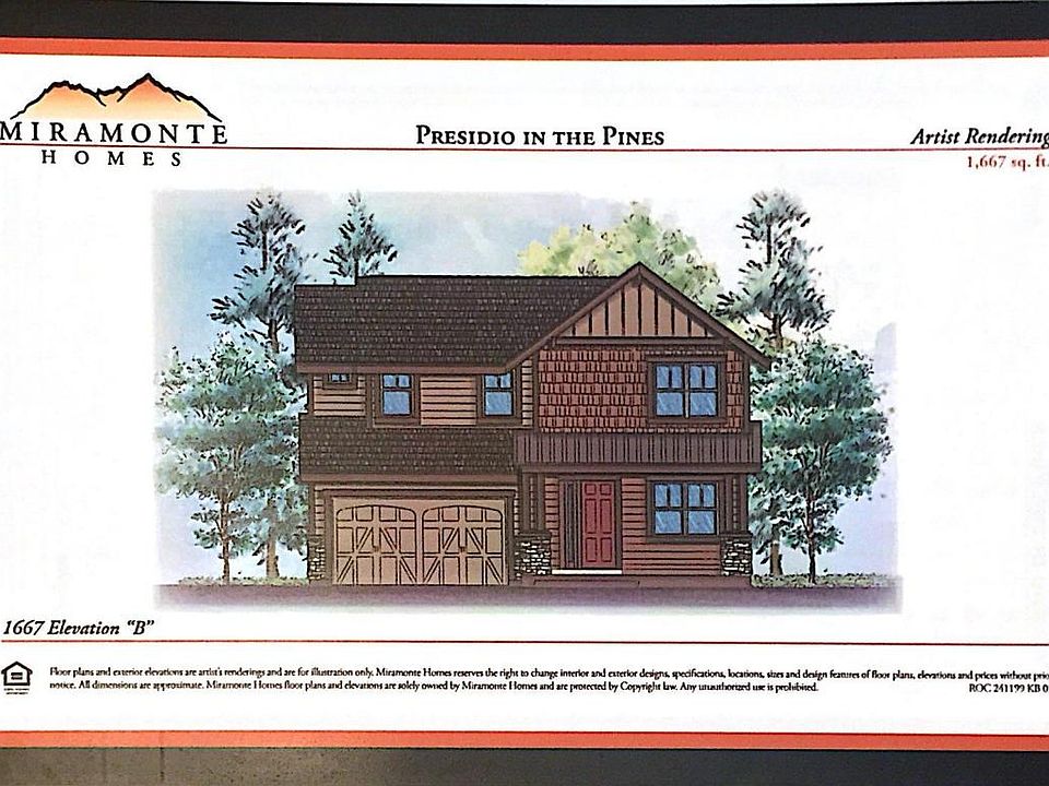 Quality construction TO BE BUILT by Miramonte Homes. This 1667 plan features a functional & open layout. Very large Kitchen/Dining/Great Room for gathering! The upper level consists of a large master bedroom suite w/a walk in shower, executive height vanity w/dual sinks, plus an additional guest room & full bath. This home will have an expansive 20'x10' rear deck! STANDARD features on all Miramonte in Presidio homes are kitchen w/slab granite countertops, 42'' upper cabinets, 18'' tile , oversized pantry, GE white or black appliances, raised 9' ceilings w/8' doors throughout, paver driveways, full roof frost shield, landscaped/irrigated front yards, gutters & more! TO BE BUILT. PRICES AND TERMS ARE SUBJECT TO CHANGE. Price shown is for Base Price, Lot Premium, & selected options to date.
