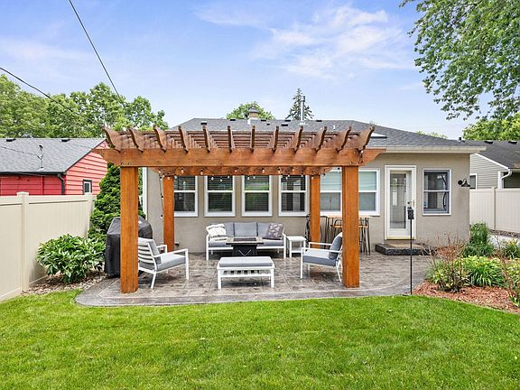 This stunning St. Louis Park home is a true head-turner with exceptional curb appeal, an oversized 2-car garage, and luxurious updates throughout. Completely remodeled by a previous owner and thoughtfully enhanced by the current one, this home features a rare main-level primary suite with a beautifully remodeled bathroom and a retractable skylight that fills the room with natural light. The open-concept main floor seamlessly connects the kitchen, living, and dining areas, all anchored by refinished hardwood floors and a cozy gas fireplace added in 2021. Natural light pours in through large windows, highlighting the fresh paint (2020) and warm, inviting atmosphere. The main level includes two bedrooms and two bathrooms, while the upper level adds flexible space for your lifestyle needs. Step outside to a private, fully fenced backyard oasis complete with newer gates, a concrete patio, and a charming pergola with café lights—perfect for relaxing or entertaining. The driveway, patio, and walkways were redone in 2022, and the home also boasts a new roof and attic insulation in 2020, new carpet in 2021, new refrigerator in 2024, new washer & dryer in 2023, and a lawn irrigation system to keep your yard lush all summer long. Nestled in a highly desirable neighborhood, this move-in-ready gem offers comfort, character, and convenience at every turn.
