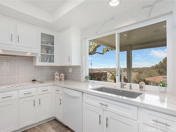 LOOKING FOR AN INCREDIBLE VIEW IN CASTA DEL SOL 55+ ? This is a rare find in the sought after community of Casta del Sol. A 2 bed + 2 bath, beautifully remodeled home with an enclosed patio that has the most amazing sunset views. You will prefer to take all your meals on the patio (rain or shine) in order to get enough of the gorgeous sights. So tranquil. This beautiful home has only one shared wall and is located on a corner lot and single loaded street. There is ample street parking and still room for one car in the driveway. The entrance of the home has a warm and inviting atrium feel. Newer windows and doors throughout and stunning remodeled bathrooms and kitchen. Washer and Dryer hookups conveniently located in the garage with parking and storage space still available. Designer inspired wood vinyl laminate flooring throughout. Neutral paint selections to appeal to the masses. Check out the subway tiles and quartz counters in the kitchen and the top of the line single basin sink. You will never want to leave, but if you do, you will find so many activities within minutes of your front door. Casta del Sol offers activities that will appeal to every taste. From Pickle ball to Road Trips and this does not even include the fun you will have at Lake Mission Viejo with all the seasonal offerings of concerts and water sports. Oso Creek Golf course is just one additional attraction located just outside the gate. Definitely a forever home.