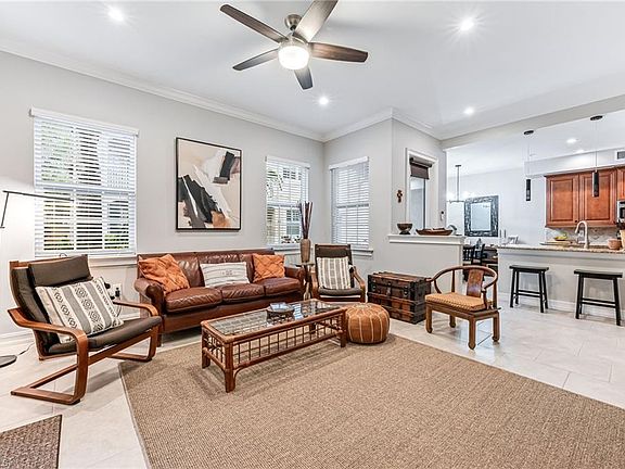 NEW HVAC November 2024! Value-added upgrades—Both bedrooms updated with CoreTec, luxury wide-plank flooring. Custom Bali Vertical Fabric Panels on slider door offers morning filtered light and privacy when needed. All lighting has been updated for a more contemporary ambient feel; interior freshly painted throughout in April 2023, exterior April 2025. All windows are custom-fitted with privacy wood blinds. This bright and spacious first-floor condo is flooded with natural sunlight and offers an ideal layout for both comfort and functionality. Featuring 2 bedrooms, a versatile den, and an open-concept design, this home is perfect for full-time living or a seasonal retreat. The kitchen is thoughtfully designed with stainless steel appliances, solid stone countertops, 42” cherry cabinets, a charming eat-in area, and convenient island, that flows seamlessly into the expansive great room with 10' ceilings and crown moulding—a welcoming space for entertaining and everyday living. The primary suite is generously sized, featuring a walk-in closet and en-suite bath complete with dual sinks and a walk-in shower. The second bedroom, located on the opposite side of the home, offers added privacy for guests or family. Second bath is wheelchair accessible. The den is the perfect spot for a home office, reading nook, or an extra bedroom. The backyard lanai view with no rear houses, offers privacy and tranquility—an ideal spot to watch the birds and enjoy the lush, tropical landscaping. Residents of Sorrento enjoy resort-style amenities, including a sparkling, palm tree-lined pool with waterfall, a clubhouse, fitness center, and bocce courts. Noteworthy—quarterly fees offer more amenities compared to other communities in the area—includes water, sewer, trash, internet/cable, landscape/exterior maintenance. If so inclined, monthly get-togethers and pool gatherings are a great way to get to know your neighbors. This friendly community is located off a quieter section of Bonita Beach Road surrounded by natural preserves and walking trails to explore. Conveniently located near I-75 and just a short drive straight to the beaches, shopping, and dining, this home offers the best of SWFL living. Don’t miss your opportunity to own this beautiful, move-in ready condo!