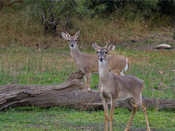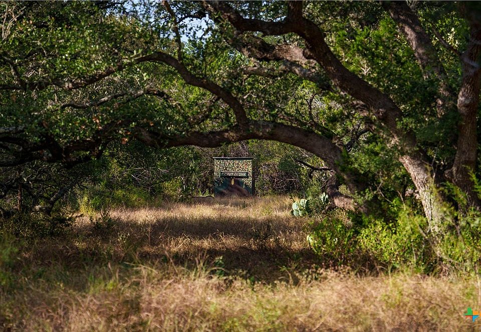 The ranch supports native wildlife including whitetail deer, turkey, and dove. Several hunting blinds and feeders are in place.