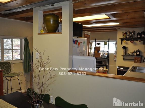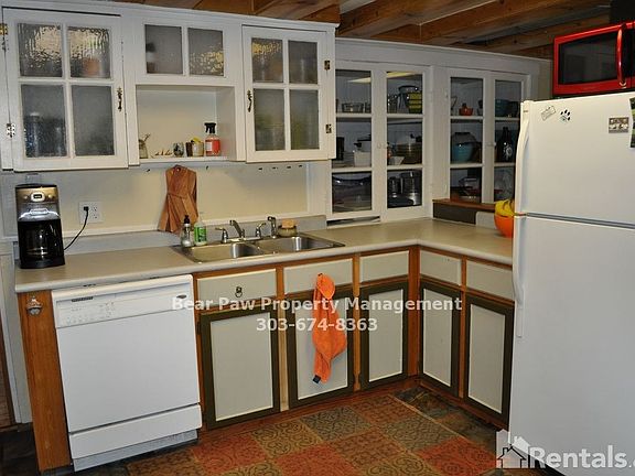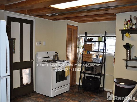 This cute and cozy, 1100 sq ft home is walking distance to downtown Evergreen. Two bedrooms and one full bath upstairs with a fun kitchen and dining area downstairs. Stove, Oven, Refrigerator, Dishwasher and Washer Dryer Units Included. Large fenced dog run with patio out back. Avail July 15th