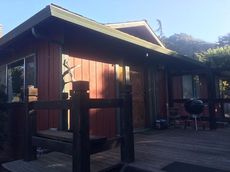 Property Id: 176607 A large private room in a two-bedroom apartment shared with a quiet man. Attached to a private house, with a cozy working brick fireplace, it is very cozy: furnished with couch, easy chairs, tv and coffee tables, sideboard cabinet, bookcases, lamp, and floor-to-ceiling knotty pine walls. Kitchen has a fridge, oven and four burner stove, lots of cabinet space, two individual electric ovens, a toaster, a large electric juicer, and copper-bottom cooking utensils. The available room may be furnished, or you may bring your own furniture. The property is surrounded by trees, its entrance hidden from the street behind large green shrubbery. The owners live in the seperate attached house, and are very friendly and helpful at all times, while providing total tenant privacy. Backed closely up to the beautiful low lying mountain ridge and two blocks from Safeway, a large front porch is great for private sunning. Text or phone Hal @ show contact info to discuss this unique place.