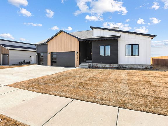 Located near the high school, this spacious home offers modern living in a peaceful setting. Step into an inviting entryway leading to a large living room with a cozy fireplace. The open-concept kitchen, dining, and living area is perfect for entertaining, featuring a large island with quartz counters and lots of seating, black stainless steel appliances, and a patio door that opens to the backyard off the dining room.