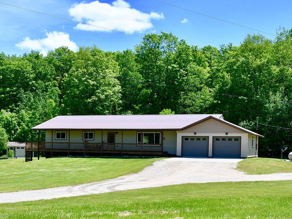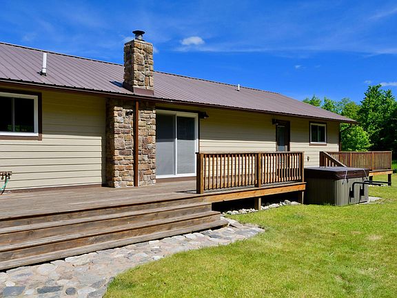 A hunters or horse lovers paradise. Move in ready 3 bedroom, 3 bath home with a large walkout basement awaiting your finishing touches. Master bedroom with attached 3/4 bath. Beautiful views from the 6' x 52' front porch. Dining room door wall leads to a wrap around deck with hot tub and 24' x 30' Patio. Oversized 23' 2'' x 27' 8'' attached garage. Metal roof, dual heating system -wood furnace & propane furnace. Additional storage for your toys or animals in the 24' x 40' pole barn, with 50% concrete floor, two 16' lean-tos and a newer 11'6'' x 16' shed. Home sits on 40 acres of hardwood forest, rolling hills, and vistas close to Elk country. Property is minutes away from the Pigeon River State Forest.