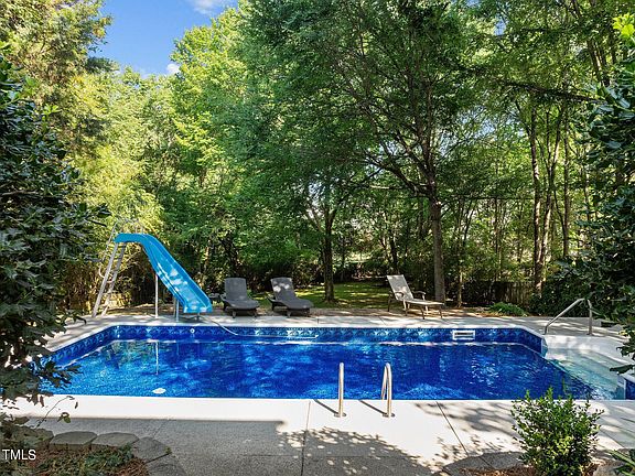 Beat the heat this summer and come see this Wake Forest home with an awesome In Ground Pool! Welcome to this stunning 3 bed, 2.5 bath home, a true gem with only two owners. From the moment you step into the foyer, you'll be greeted by soaring ceilings and a wonderful layout that makes this home truly special. The spacious family room features a wood-burning fireplace and large windows that fill the space with natural light, leading to a walk-out deck perfect for entertaining. This home boasts a charming rocking chair front porch and is situated on a large cul-de-sac lot with nearly .5 acres. The huge fenced-in backyard is perfect for families and pets, featuring two private decks and a beautiful appx. 14' x 28' in-ground pool with a fun slide, entry steps, and a new pool liner!! The kitchen and breakfast area is spacious and offers views of the backyard. The kitchen is equipped with ample cabinet storage, granite counters and great natural light, making it a delightful space for cooking and gathering. The home is move-in ready, offering comfort and convenience. Upstairs, the primary bedroom features vaulted ceilings and an oversized closet, with a wonderful primary bath that includes a soaking tub flanked by corner windows and a walk-in shower. Upstairs, you'll find two additional spare bedrooms and a beautiful Jack and Jill bath. Located in excellent Wake Forest, this home is convenient to downtown, shopping, and dining, as well as to Raleigh and RDU/RTP. This home is a rare find - schedule your tour today and experience all it has to offer. Pool pump (2023), Pool liner (2024), Water Heater (2023), Roof (2014), Dishwasher (2024). NO HOA!