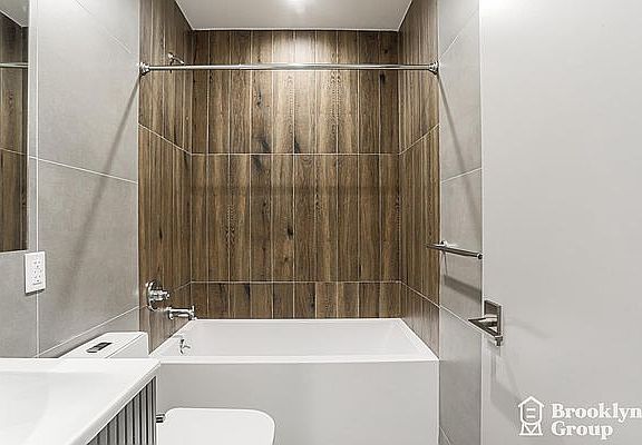 **BRAND BEW 2 Bedroom/2 Bathrooms unit with a balcony and IN UNIT WASHER/DRYER available for ASAP move-in.** Features: Hot Water included. Hardwood floors throughout, stainless steel appliances, central heat & AC, in-unit washer & dryer, large living room, and a terrace! Building features parking, a rooftop, elevator, and package room! **We have many units available in the building and will show you all of them.**