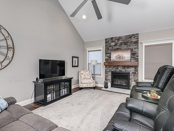 3-BEDROOM RANCH WITH OPEN FLOOR PLAN AND COUNTRY VIEWS — Looking for single-level living with style and comfort? This beautiful true ranch home has no steps and features an open layout perfect for easy living and entertaining. The living room boasts vaulted ceilings, a cozy fireplace, and luxury vinyl flooring that flows through the main living areas. The spacious kitchen is designed for everyday function with granite countertops, an island, and a walk-in pantry. The primary suite offers a private retreat with a large walk-in closet that connects directly to the laundry room, plus a luxurious bath with double vanities, granite counters, and a walk-in shower. Enjoy morning coffee or quiet evenings in the enclosed patio area, or take in the peaceful country views from the quiet cul-de-sac setting. With open space beside the home and a great location close to town, this property blends modern comfort with serene surroundings—perfect for anyone wanting a move-in-ready ranch in a quiet community.
