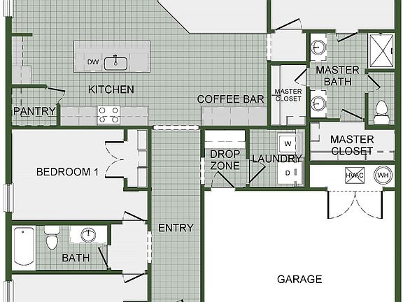Open-concept living spaceLarge primary suiteDual closetsCovered patioPocket officeFlexible living spaceCoffee bar