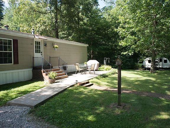 Two mobile homes on just under 4 acres with a park like setting. Beautiful property with a ravine, mature trees, garden and privacy. The front mobile home is a 1996 Spruce Ridge and features 3 bedrooms and 2 full bath. The back mobile is a 2000 Fairmont in great shape with several updates including a Wood burning stove, Appliances, Flooring, Hot Water Tank (2016), Furnace (2016), A/C (2018), Deck & Concrete Patio. This property includes 3 sheds. The largest shed is currently being used as a Pottery Studio and features water, electric and gas heat. There are 2 septic tanks on the property and 1 well. Schedule your private showing today.