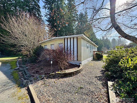 Manufactured home in the desirable 55+ community of Seven Lakes Mobile Home Park. Conveniently located minutes from Smokey Point shopping and the lakes for recreation. 2 bedroom/2 bath with generous sized living room, kitchen with an abundance of cabinetry and eating space plus an additional formal dining room with built in hutch. The home sits on a quiet lot with a greenbelt side yard. Attached carport and handy storage shed. The community features a clubhouse that can be rented for events. Pets are welcome by approval of the park.
