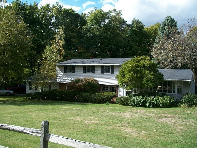 Spacious tri-level home on quiet road with beautiful backdrop of mature woods affording privacy in a country setting. 4 bedrooms, 2 1/2 baths, beautiful hardwood floors through out, lovely kitchen with Crian upgrades to counter & tile backsplash make the kitchen look modern, family room with woodburing fireplace, large living room with views of countryside, blocked & enclosed patio with bluestone floor make all season room. A great property at a great price with country appeal, and lots of room to grow.