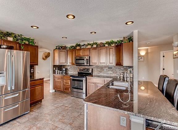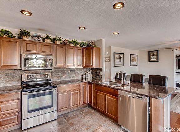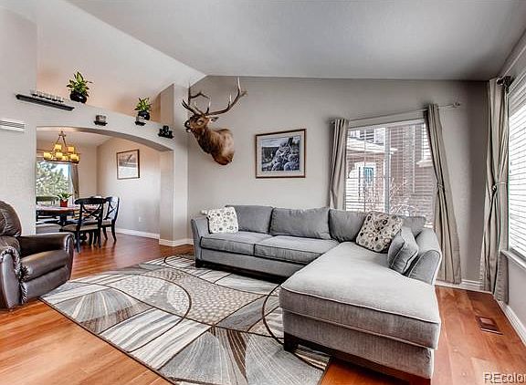 Rare Plum Creek home at the end of a quiet cul-de-sac. Enjoy stunning sunsets and mountain views from a spacious Trex deck. Inside, you're welcomed by a living room with 2 story ceilings and bright windows. Gorgeous warm gray tones and cherry flooring are the perfect backdrop for your decorator touch. An elegant staircase boasts recently updated wrought iron railing. Gorgeous kitchen offers a 'modern mountain' feel and features slate flooring, cherry colored cabinetry, deep gray slab granite countertops, and stainless steel appliances. Main level bedroom offers flexibility as a bedroom, office, or playroom. Upstairs, the spacious Master Suite features a French door entry, vaulted ceilings, and a deluxe 5 piece bath. Secondary bedrooms are split for maximum privacy. Backing to beautiful open space, the professionally landscaped backyard with large grassy space, Trex deck, and flagstone patio takes full advantage of the mountain views. Unfinished basement offers room to expand!