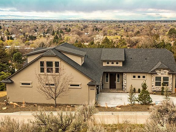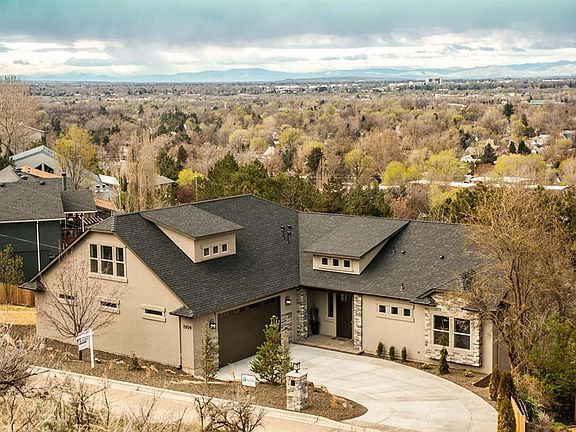 Amazing custom home w/gorgeous City & Mountain views. Nestled adjacent to Boise owned Hillside to Hollow foothill rec area. Sits on approx acre w/an abundance of space, privacy & outdoor entertaining areas. Modern elegant finishes w/upgraded fixtures throughout. 10P ceilings on main level & walls of windows take in the views. Spacious entertainers kitchen features built-in Bosch appliances, stainless apron sink, slab granite, custom cabinets & 4'x9' island. Spacious main level master suite w/city views, large walk-in closet and Luxurious Master bath that features a 6' soaker tub & 8' walk in shower w/dual heads. Main level also feat 2 add'l bedrooms, full guest bath, 1/2 bath, mud & laundry rm. Large Bonus rm over garage & separate game/flex room in basement. Two 95% HVAC systems. Large 972 sq.ft. garage. Central vac. rough in, tons of storage. Approx 2 miles to Downtown Boise. Comes w/extended warranty.