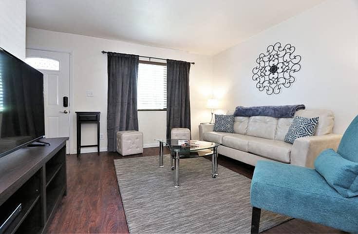 Great location...1.8 miles from Banner Medical Center, less than 1 mile to restaurants and shopping, 2 miles from UA with Cat Tran stops a block away. This is a FULLY furnished (furniture, pots, pans, TV's, etc.) condominium with 2 designated off street parking spots. Washer and Dryer in the unit and small private back yard. Flexible 1-12 month lease. Owner pays wifi, trash, water, and electric. Fully furnished.