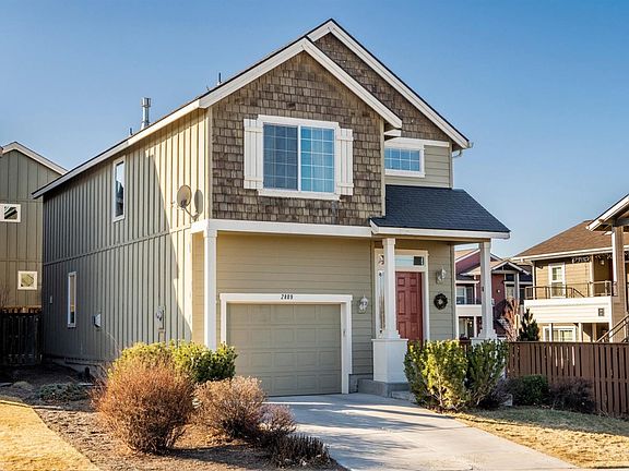 This 4 bedroom, 2 1/2 bathroom home is in a fantastic location close to Bend's Eastside shopping, coffee shops, restaurants, medical offices and a great location to watch fireworks on the butte from the front or back yard. Home also has a slight mountain view! Home features a large open great room with gas fireplace and ceiling fan; kitchen has tile countertops and a breakfast bar. Upstairs has 4 bedrooms and laundry room with 2 full baths.