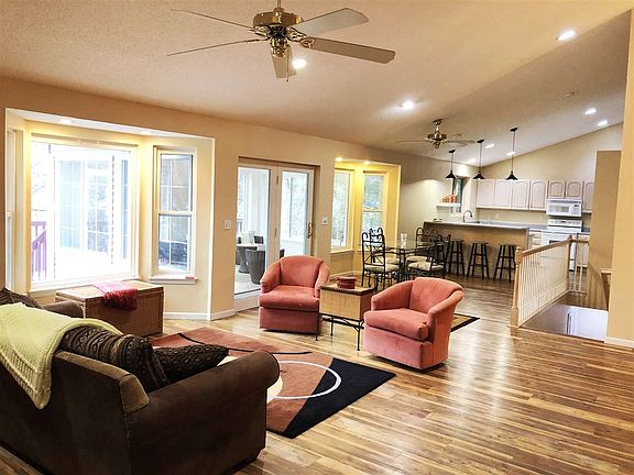 Almost $30k under assessed value, 4700 SF of liv/storage, walk-out ranch w/3 bed, 3 full baths. Vaulted ceilings, floor-to-ceiling windows, library shelves w/ladder, 4-seasons rm, & hrdwd foolrs in great rm,kitchen & entry. Main is completed by master w/double, trough-style sink in full bath, walk-in closet; and two large bedrms & full bath. Large lower level offers space for family rm, game rm, playrm; wet bar/kitchenette; bonus room; full bath; & 3-seasons rm. Outdoors find 2 decks & patio. New roof 2018!