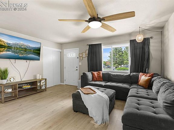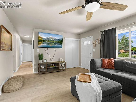 Tastefully remodeled rancher in the center of the city! Enjoy Pikes Peak fireworks from the comfort of your own back yard with unobstructed views. This home has LVP throughout - no old carpet or staining to deal with. Refinished cabinetry in the kitchen with stainless steel appliances. Large laundry space with ample storage just off the kitchen, as well. Down the hall find three spacious bedrooms and a large linen closet. The bathroom has beautiful tile work and a built in vanity with its own storage and lighting. This home may be small but it's big on space, inside and out, including two storage sheds in the rear!