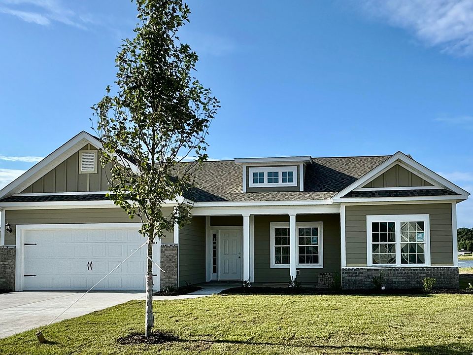 Welcome to Rivertown Row North, the most anticipated new development in the heart of Conway. Enjoy the comfort of Natural Gas heat, cooking & tankless hot water in this single level Lakefront sullivan model. This 3 bedroom, 2 bath floor plan has a large rear Master suite, vaulted great room ceilings, Quartz kitchen counter tops, and a kitchen Island w/ seating. The waterproof laminate plank flooring extends throughout the kitchen, baths  and living areas.  There is also a 2 car painted and trimmed Garage, drop down attic access, Laundry room, pantry,  covered front porch, and a covered rear porch with an additional concrete patio that doubles your outdoor entertainment space. All homes in Rivertown Row North feature wider than average lots, open floor plans, 9' ceilings, painted garage interiors, fully cased windows, GAF high performance architectural shingles, 12" roof overhangs, Aristokraft Birch shaker cabinets, Rinnai tankless water heater, Frigidaire stainless appliances, and many other upgraded architectural details. The neighborhood features sidewalks, street lighting and a community pool with pavilion. Building lifestyles for over 35 years, we remain the Premier Homebuilder of new residential communities and custom homes in the Grand Strand and surrounding areas. We are three-time winners of the Best Home Builder award from WMBF News Best of the Grand Strand. In 2023, we were also voted Best Residential Real Estate Developer in the Myrtle Beach Herald Reader’s Choice Awards. We began and remain in the Grand Strand, and we want you to experience the local pride we build today and every day in Horry and Georgetown Counties. All Pics are not from actual home. Pics are from a similar floor plan. Actual Colors, feature and upgrades will be different.