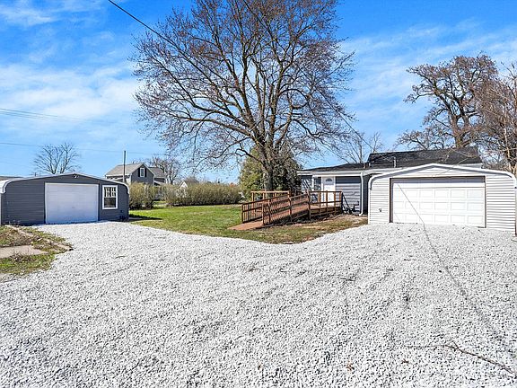 Welcome to your dream home! This charming 3 bedroom and 2 full bathroom home is spread across 1,296 square feet of comfortable living space. The master suite is complete with a beautifully tiled shower for your relaxation. The heart of the home is the kitchen, featuring stainless steel appliances and elegant granite countertops. The home sits on a large corner lot, with a nice tree line providing some privacy. The home also features a large rear deck, 2 detached garages with 3 total spaces, and a fresh gravel driveway!