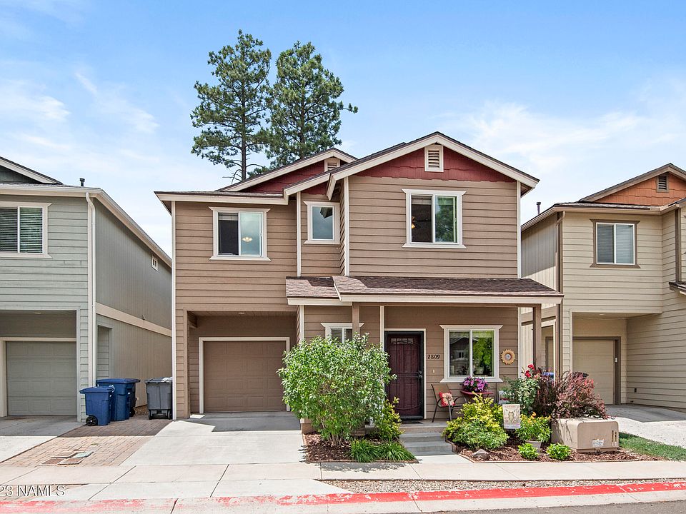 Do not miss this beautiful 3 bedroom 2.5 bathroom home located in the desirable West Flagstaff community of Presidio. Situated on a quiet loop at the rear of the community, this home provides easy access to the local trails, forested areas and park! The home features a tandem 2 car garage, welcoming front entrance and a fully landscaped backyard. The open concept floorplan features an upgraded kitchen with stainless appliances, granite counter tops, stained wood cabinetry and views over the living room, perfect for entertaining. The second level hosts two sizable guest bedrooms, a guest bathroom, walk-in laundry room and the primary suite featuring a large soaking tub and walk-in closet. *Seller may consider a carpet credit with strong offers.