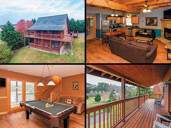 Awesome rental cabin located only minutes from Pigeon Forge Parkway, dining, shopping and entertainment! This 4BR/3BA log cabin has been fully renovated and features plenty of space for the whole family. The main floor features a master BR with a Jacuzzi tub and full bath. There is also a large kitchen with stainless steel appliances, and rock fireplace with gas logs in the living room and a large wrap around porch. From the kitchen you can access the private hot tub room. The upstairs has two large rooms both with their own full baths. In the basement you will find a walk out porch as well as game room with pool table and another large bedroom and full bath. The cabin has a level driveway and plenty of room for parking.