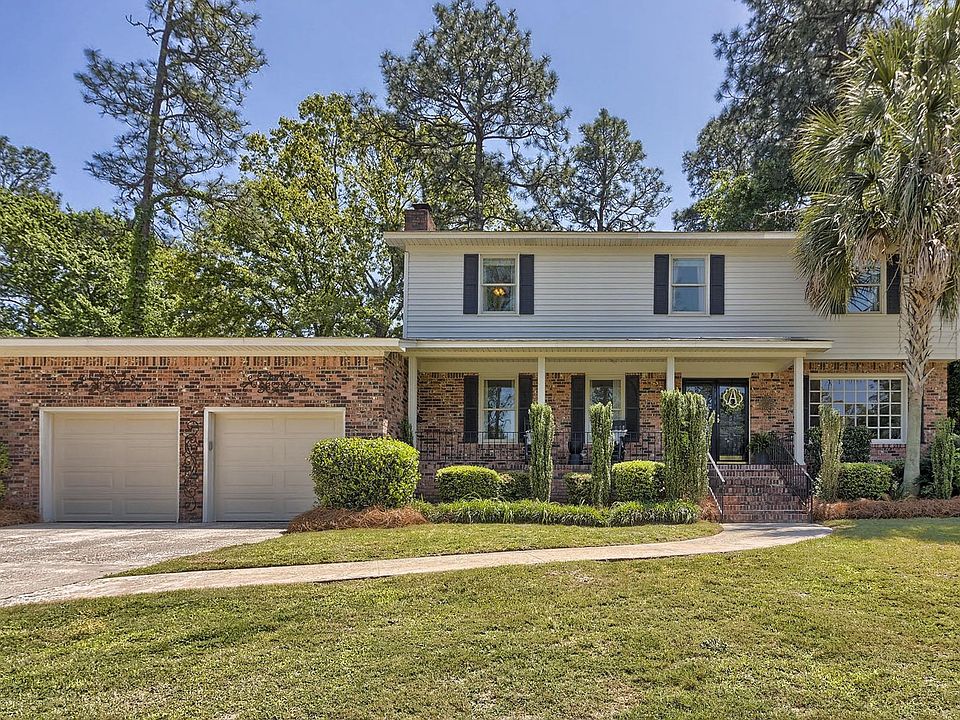 Traditional home with modern updates located on over 1/3 acre lot with large front & fenced back yards! Sidewalk community known for walking, located convenient to Columbia Airport, I-26 & close to new Lex 2 Performing Arts Center & Offices. Enjoy beverages & watching neighbors walk by on the wide Southern front porch! Plenty of driveway parking for visitors & multi car household as well as paved side for camper or boat with no HOA! Neighbors take pride in their homes in this community & it shows! No cookie cutter used here! Inside you'll find beautiful wide plank hardwoods throughout the main floor except the roomy yet cozy front living room to left with fireplace. It has a removable gas insert, otherwise wood burning. Living room to the right extends the whole depth of house with gorgeous open views of front & back yards! Wall mounted removable fireplace in here. Formal dining room with room for buffet leads right into updated eat in kitchen featuring modern white cabinets with great pull outs, fantastic gas stove & gorgeous white quartz counter tops large enough to cook & entertain! Closet pantry & nook/coffee bar & room for kitchen table, office desk or relaxing space! Half bath & large laundry room! Beautiful back yard with established landscape, fireplace & patio entertaining area! Upstairs are 5 bedrooms, one which could make a great office with built in bookshelves! The other rooms are very large and the master suite has two closets & updated bath with new granite!