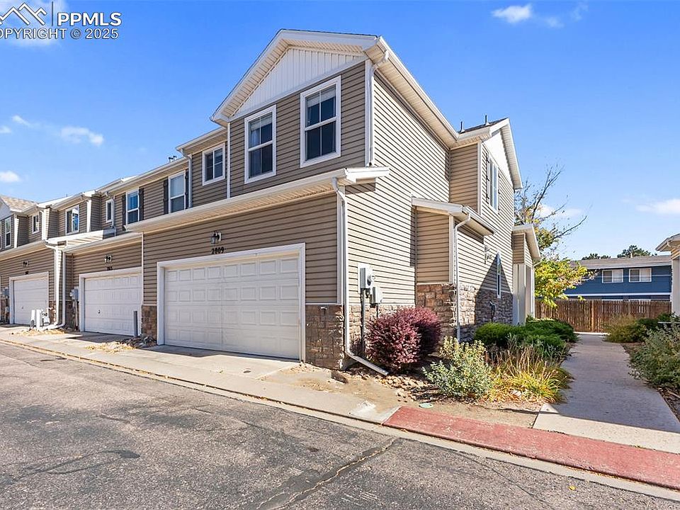 Ideal corner unit with privacy, an oversized two-car garage, remodeled kitchen, and thoughtful updates throughout. This home offers two spacious bedrooms with private en suites, an oversized loft, and 2.5 bathrooms—creating the perfect layout for comfort and functionality. Conveniently located near parks, schools, shopping, restaurants, Fort Carson and Peterson SFB. Step inside to discover a bright, open main level featuring upgraded LVP flooring, abundant natural light, and a spacious living area ideal for gathering. The modern kitchen showcases updated cabinetry, stainless steel appliances, generous counter space, and a breakfast bar perfect for casual dining or entertaining guests. A conveniently located powder bath on the main level adds extra functionality. Upstairs, the oversized loft provides flexible space for a home office, gym, or cozy retreat. Both large bedrooms feature private en suite bathrooms and walk-in closet space for comfort and organization. The oversized two-car garage offers plenty of room for vehicles and storage, with additional space available in the crawl space. Outside, enjoy a peaceful neighborhood setting where exterior maintenance, landscaping, and snow removal are handled for you—creating a true lock-and-leave lifestyle. With easy access to major roads, local amenities, and military bases, this move-in-ready home combines convenience, comfort, and style. Don’t miss your opportunity to make this beautiful home yours!
