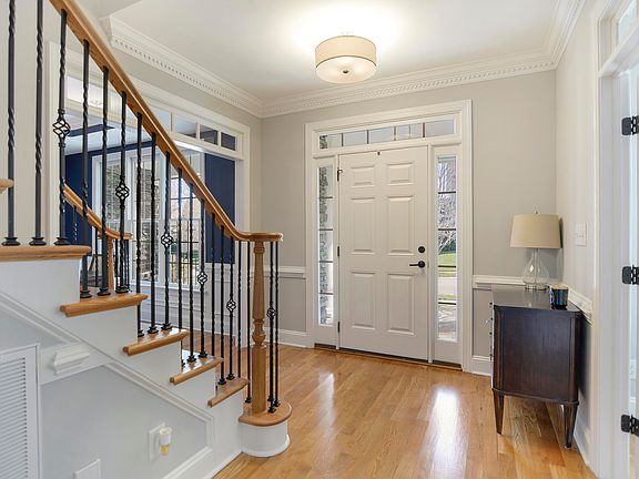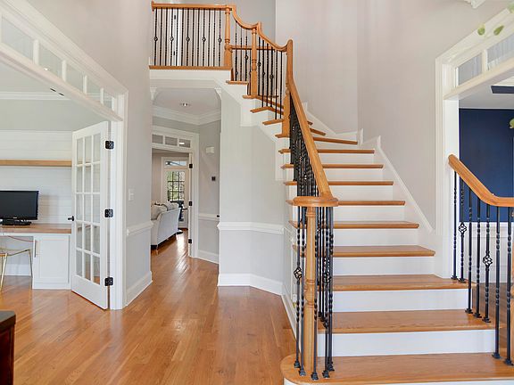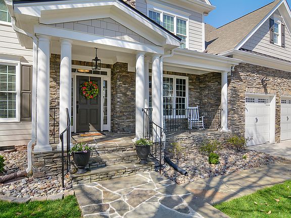 Stunning custom 5 bed 5.5 bath home on .38 acre lot located on highly desirable street in popular Bedford at Falls River. Loaded with recent updates. New roof 2021. New HVAC 2021. New tankless water heater 2021. Updated light fixtures. Hardwoods throughout most of home. 1st floor office with french doors, shiplap walls & built-in wrap around desk. Formal dining includes wainscoting & trey ceiling. Spacious family room features built-in bookshelves & stone gas log fireplace. Recently renovated kitchen offers quartzite countertops, tile backsplash & stainless steel appliances (gas cooktop). Sunlit breakfast room has vaulted ceiling & wonderful backyard views. 1st floor guest suite. Large primary suite with trey ceiling, granite top dual vanities, whirlpool tub with separate tile shower & generous walk in closet. Oversized bonus room with separate back stairs. Additional office space upstairs. 3rd floor includes separate living/play area + bedroom with full bath. Oversized 2 car garage with tons of extra storage area + overhead storage. Expansive screen porch & additional deck + 2-tiered paver patio. Fantastic, fenced backyard with great wooded views! Convenient to all the great Bedford amenities including pool, clubhouse, playground and tennis courts. Prime North Raleigh locale ... close to I-540, North Hills, Downtown Raleigh & many great shopping & dining options.